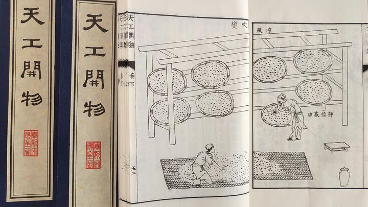 《天工開物》原著編寫于明末清初,是一本中國古代百科全書,共18卷,附有120多幅插圖,描繪了明代及以前的中國古代130多項生產技術和工具的名稱、形狀、工序。