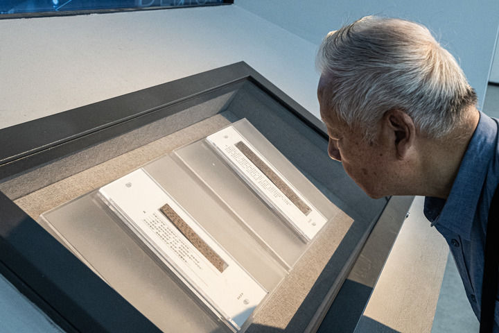 近幾天,2000多年前沉睡于云夢的“喜叔”被邀請“回家”,專門陳列于簡牘專題展覽的開端。他目光熠熠,穿越歷史長河而來,仿佛在審視眼前的一枚枚竹木、一段段簡文。
