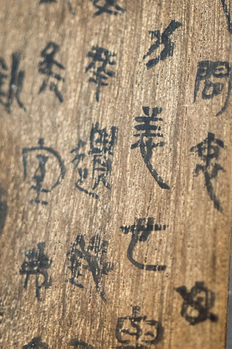 4月15日,云夢縣博物館陳列的《黑夫木牘》(復制品)局部。新華社記者 肖藝九 攝