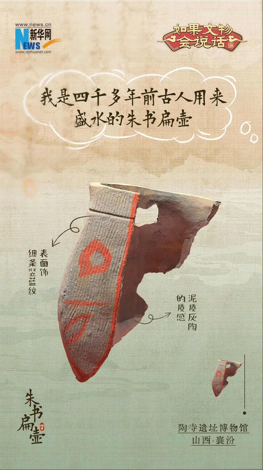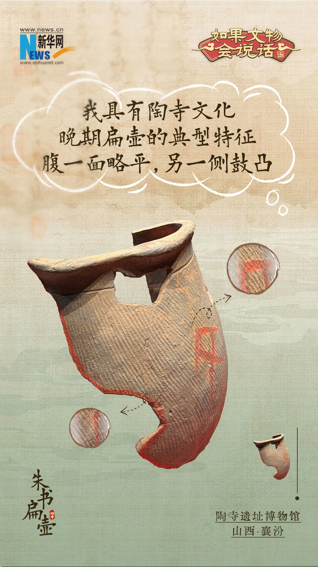 發現一片帶有朱書的陶扁壺殘片