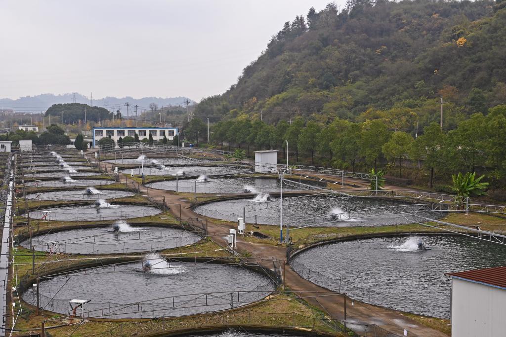 浙江省衢州市衢州鱘龍水產食品科技開發有限公司的鱘魚魚池(12月6日)。新華社記者 盧哲 攝