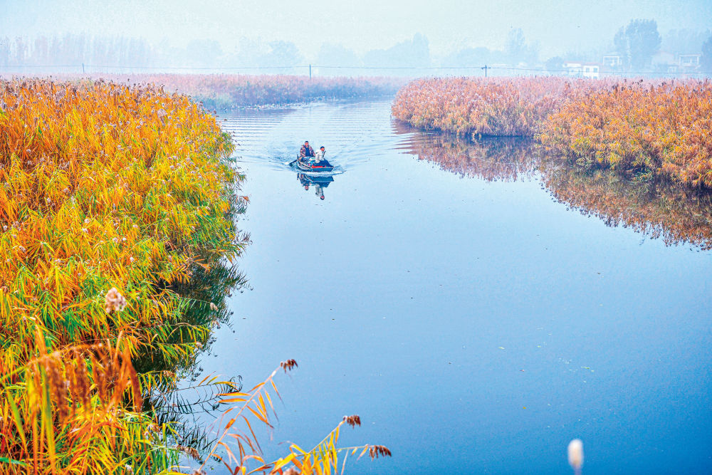 初冬時節,淀邊村民行舟于白洋淀。(周龍山 攝)