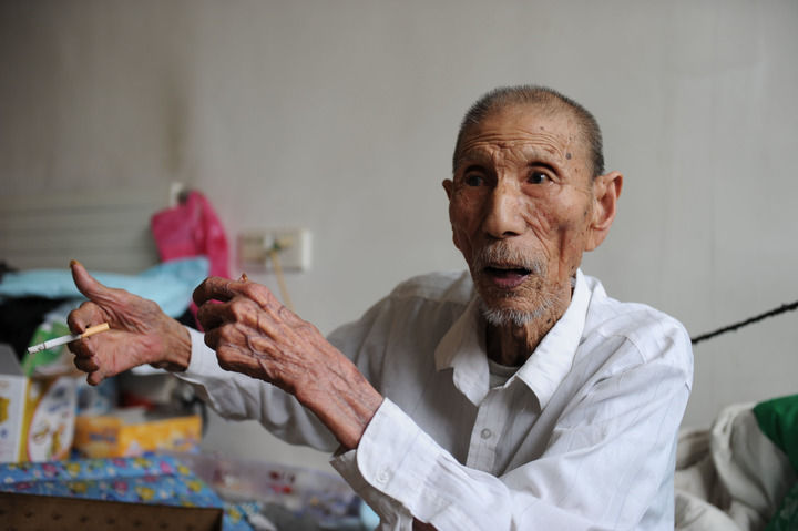 時年90歲的雁翎隊老隊員孫革在講述當年的戰斗經歷(2011年6月24日攝)。新華社記者 王民 攝