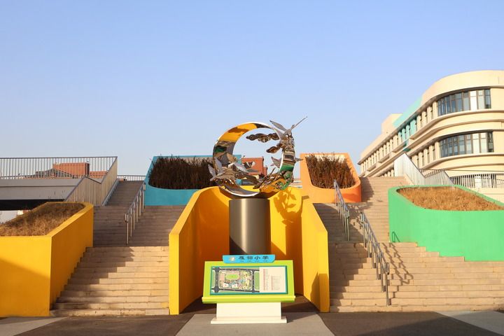 在安新縣雁翎小學的凌云廣場上,有一座“青云之志”主題雕塑,鼓勵每一位雁翎學子都能少年立志,展翅騰飛,成為對社會有用的人。(受訪者供圖)