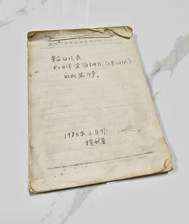 曾任雁翎隊指導員的槐澤民在晚年寫的“革命回憶錄——關于白洋淀雁翎隊(又名三小隊)的武裝斗爭”(2024年11月13日攝)。新華社記者 蘇凱洋 攝