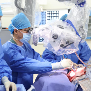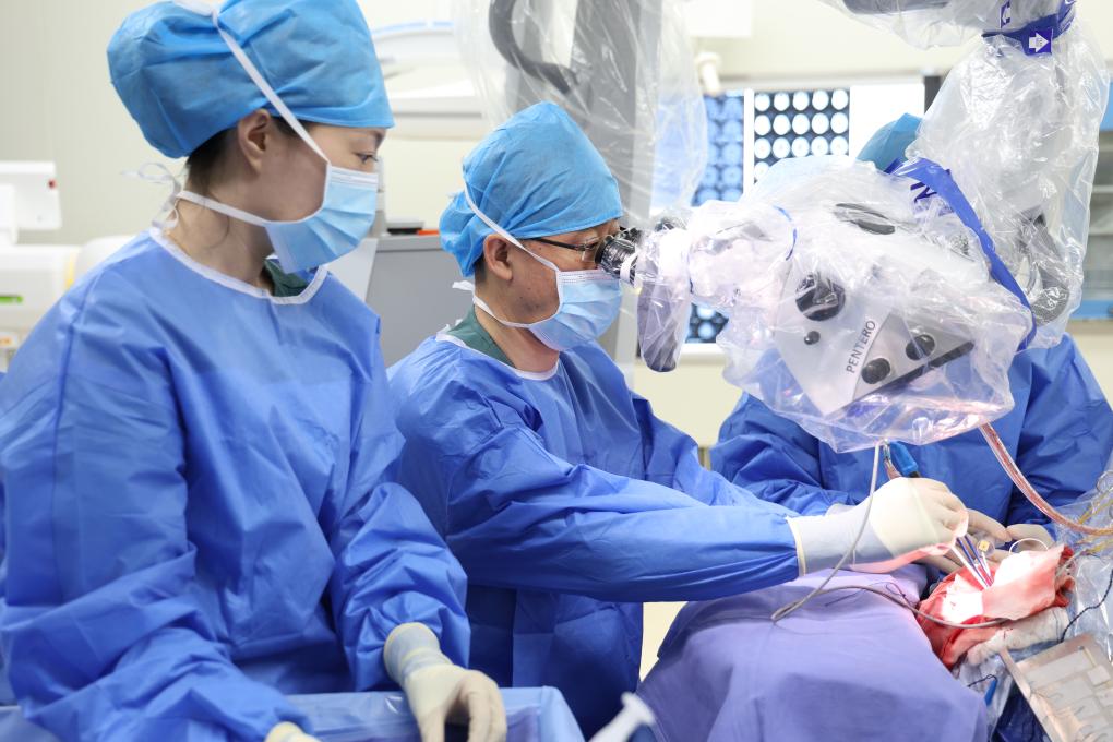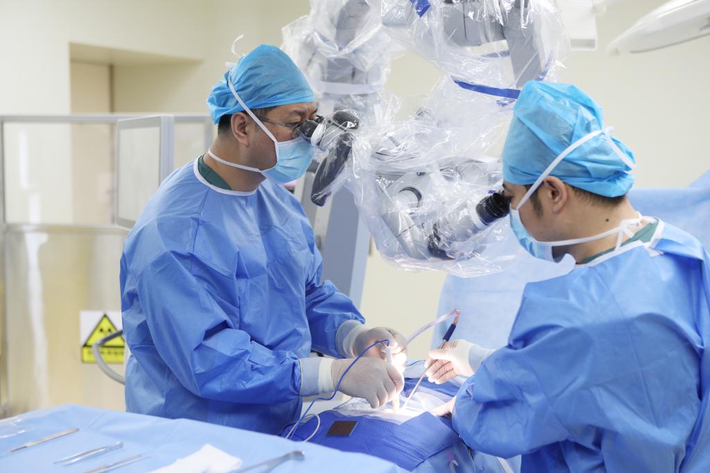 圖為宣武醫院神經外科主任醫師、雄安宣武醫院神經外科執行主任吳浩在雄安宣武醫院實施手術。(宣武醫院供圖)