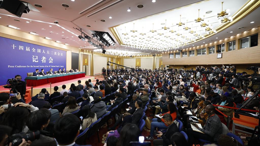 • 6日下午,十四屆全國人大二次會議經濟主題記者會在北京梅地亞中心舉行。來自國家發展改革委、財政部、商務部、中國人民銀行、證監會的5位部門主要負責人,回應經濟熱點話題,詳解政策未來走向。