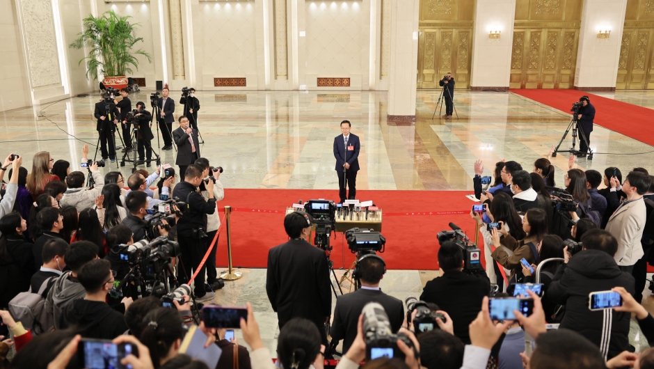 2024年3月11日下午(閉幕會后),在人民大會堂北大廳舉行十四屆全國人大二次會議第三場“部長通道”集中采訪活動,邀請部分列席會議的國務院有關部委主要負責人接受采訪。新華網進行網絡直播。