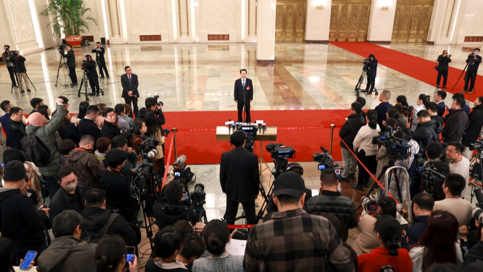 2024年3月8日上午(第二次全體會議后),在人民大會堂北大廳舉行十四屆全國人大二次會議第二場“部長通道”集中采訪活動,邀請部分列席會議的國務院有關部委主要負責人接受采訪。