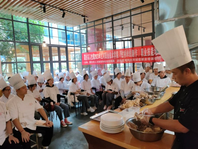 蒙自市人社局在紅河職業技術學院開展過橋米線制作相關培訓。新華網發
