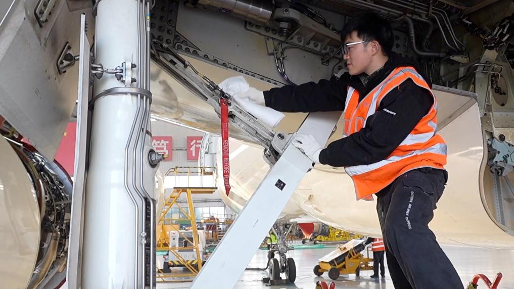看訓練有素的C919“保養員”如何將清潔工作高效、細致地完成。