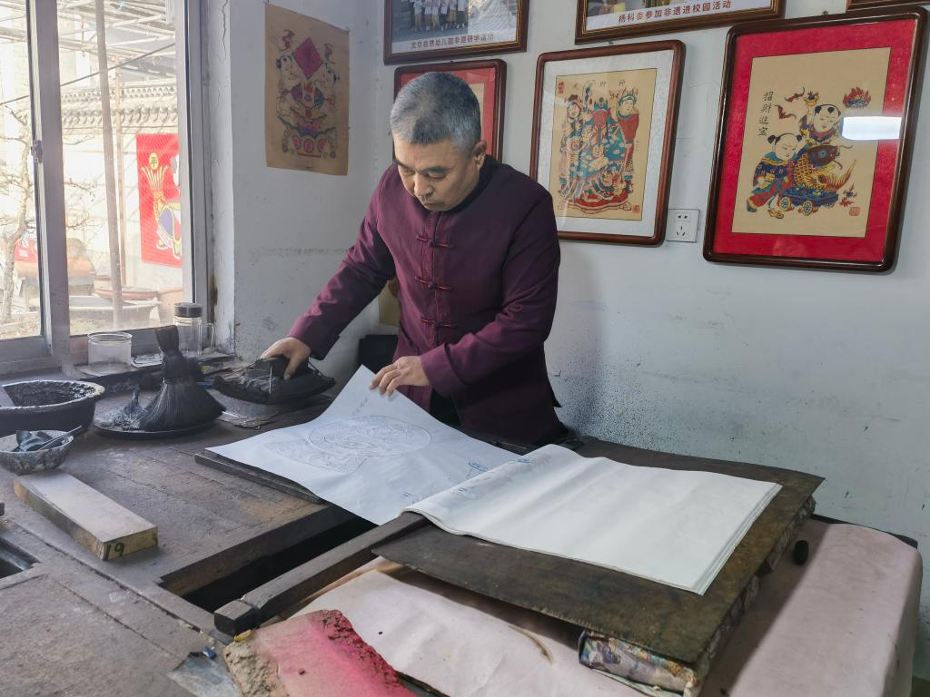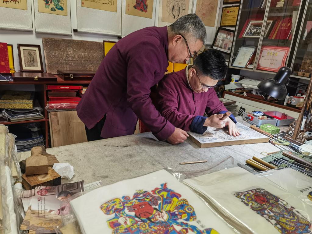 楊乃東的兒子楊科委是個“85后”,在爺爺、父親的耳濡目染下,從小就學習刻板、套印。如今他不僅能獨當一面,還將楊家埠木版年畫搬上網絡平臺,致力于弘揚非遺。