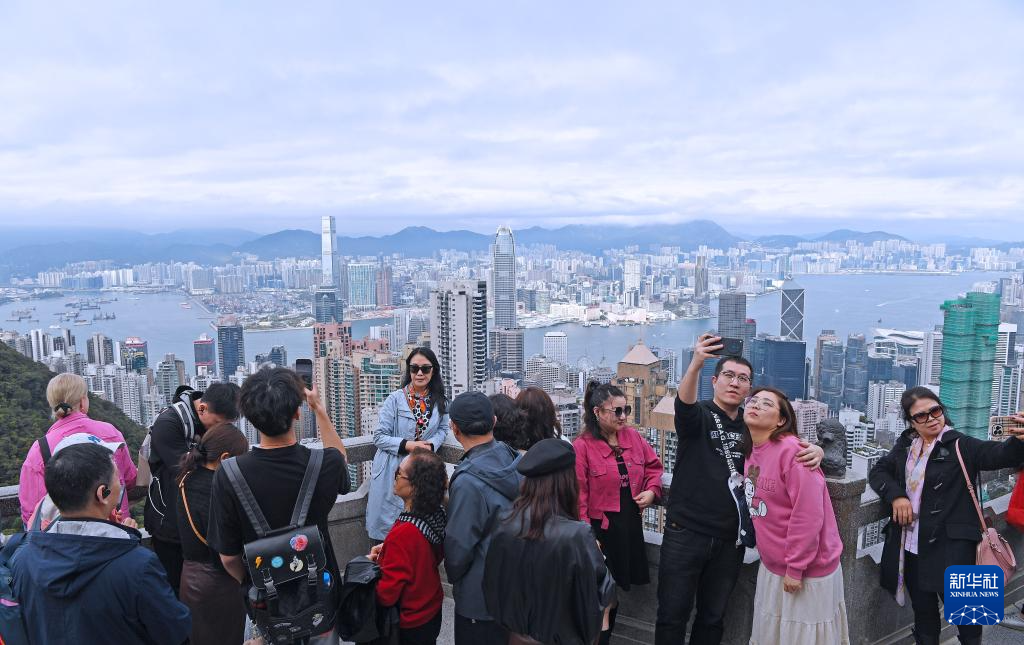 連日來,太平山頂、中環摩天輪、尖沙咀海港城和銅鑼灣等旅游景點及商圈游人如織,不少游客在紅色的節慶裝置旁拍照留念,全城喜氣洋洋。