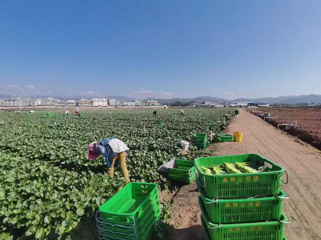 在云南省祿豐市彩云鎮,農戶們正在采收蔬菜,送往包裝車打包外運。(受訪單位供圖)
