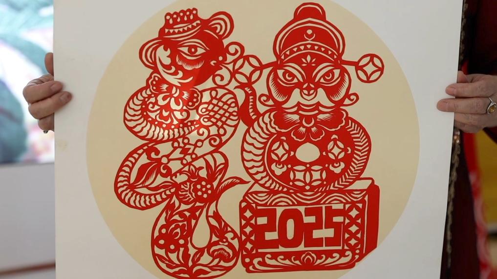 左手持紅紙,右手握剪刀,65歲的伏兆娥時而微笑、時而凝神,沉浸在創作之中?!八透I摺?,許仙、白娘子,“蛇盤兔”……伏兆娥制作了多幅造型各異的剪紙作品慶祝新春佳節的到來。