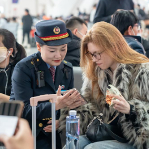 春運以來,廣州南站每天有近2千名外國旅客乘車。為應對外國人越來越多的溝通需求,車站為售票窗口、檢票口等崗位的工作人員配備了多語種翻譯機,可以實時翻譯十幾種語言,并開展覆蓋客運員、售票員等崗位的雙語培訓,為乘坐高鐵的外籍旅客提供購票、乘車等指引。