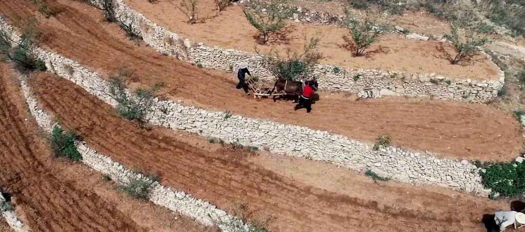 2022年,涉縣旱作石堰梯田系統被認定為全球重要農業文化遺產,這讓王虎林的小米有了引以為傲的賣點。然而,村里年輕人外出打工,老年人無力耕種,越來越多的梯田被棄耕,農業文化遺產傳承面臨困境。2023年春天,王虎林和村民約定——“我為你春耕一畝田,你秋后還我10斤谷”,開始了他的“復墾梯田計劃”。
