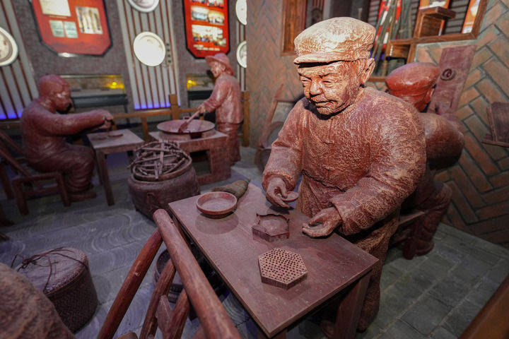2025年1月6日,湖南省瀏陽市一家花炮企業展示的傳統鞭炮制作復原場景。新華社記者 陳澤國 攝
