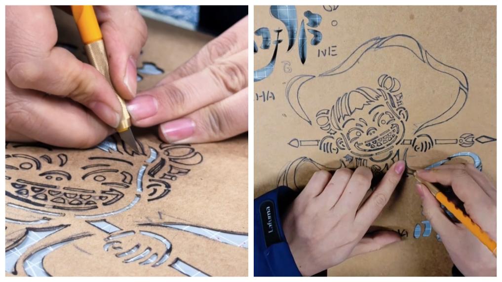 藍印花布設計,“有圖必有意,有意必吉祥”。過去,藍印花布圖樣多采用盤長紋、蝙蝠紋、萬字紋、花鳥圖樣等寓意吉祥的傳統紋樣,這次用藍印花布印染技藝塑造“哪吒”這一全新形象,也是一次不小的挑戰。