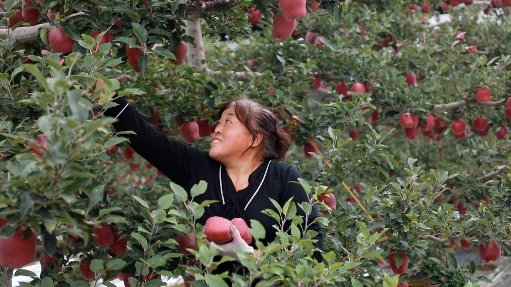 在甘肅天水,豐收時節的果實綴滿枝頭?;鸺t的蘋果,連接著鄉村全面振興的美好未來。