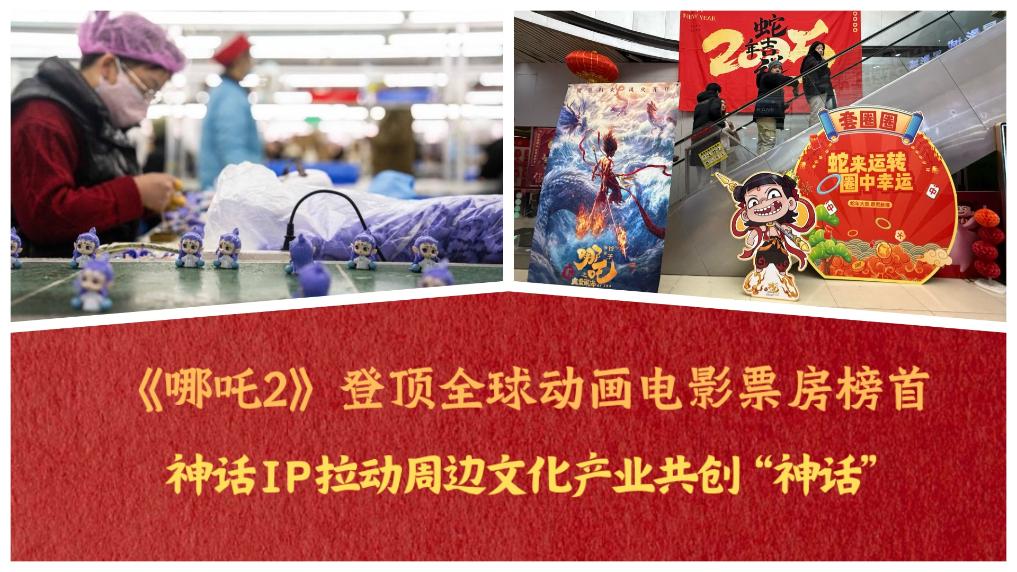 動畫電影《哪吒2》自1月29日上映以來,連破多項票房紀錄,已位居全球動畫電影票房榜之冠,這是亞洲歷史上首部獲得該成績的“非好萊塢制作”。電影熱映的同時帶動其IP衍生產品熱銷,神話IP正在拉動周邊文化產業共同創造新的“神話”。