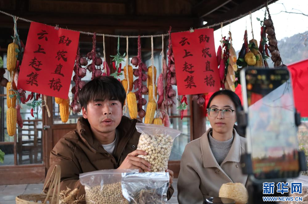 吳聰(左)在江西省撫州市廣昌縣長橋鄉上凡村直播。新華網 王曉震 攝