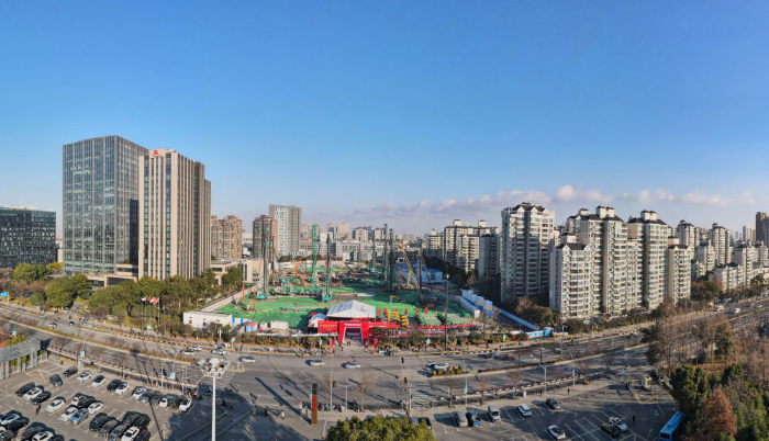 2025年1月9日,上海靜安區2025年第一批重大項目集中開工儀式在靈石社區(自儀廠地塊)項目現場舉行(無人機照片)。新華社記者 方喆 攝