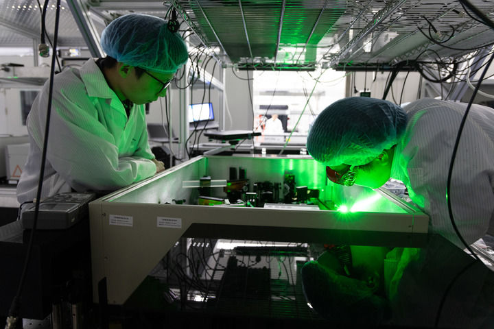 2024年10月16日,科研人員在綜合極端條件實驗裝置(懷柔)超快光場物性研究系統實驗站調整光路。2025年2月26日,綜合極端條件實驗裝置通過國家驗收,這標志著我國建成了國際先進的同時具備低溫、超高壓、強磁場和超快光場等極端條件為一體的用戶實驗裝置。新華社記者 金立旺 攝