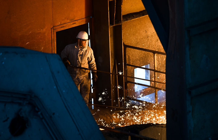 2025年2月20日,工人在內蒙古興安盟烏蘭浩特市烏蘭浩特鋼鐵有限責任公司煉鐵廠作業。新華社記者 貝赫 攝