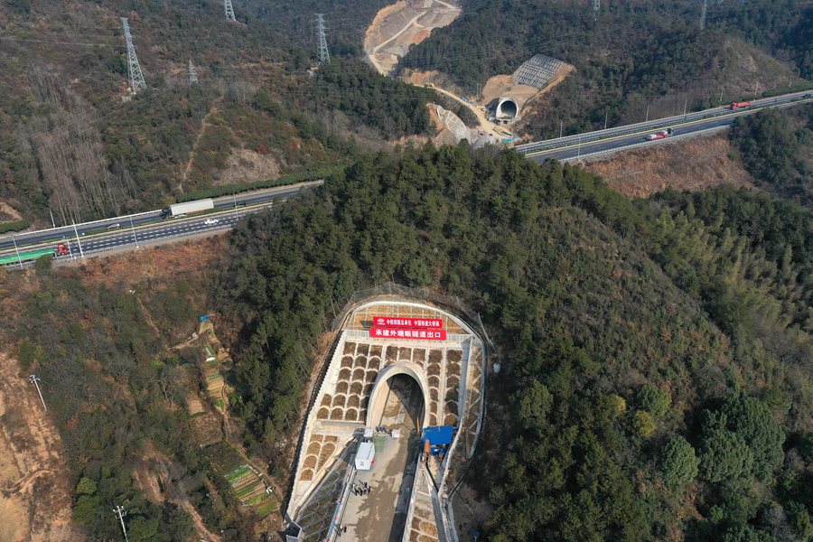 2024年1月6日拍攝的位于浙江省建德市境內的杭衢鐵路(建衢段)外塘畈隧道口(無人機照片)。 杭衢鐵路(建衢段)是我國首條采用“PPP(政府與社會資本合作)+EPC(設計施工總承包)”模式運作的高鐵項目。新華社記者 黃宗治 攝