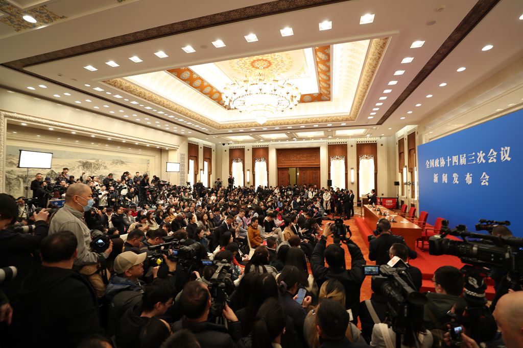 3月3日,全國政協十四屆三次會議新聞發布會在北京人民大會堂舉行,大會新聞發言人劉結一向中外媒體介紹本次大會有關情況并回答記者提問。圖為新聞發布會現場。新華網記者 王翰林 攝