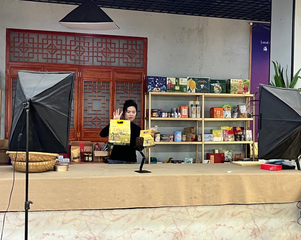 吳少玉為村里種植的紅米直播帶貨。新華社記者 羅江 攝