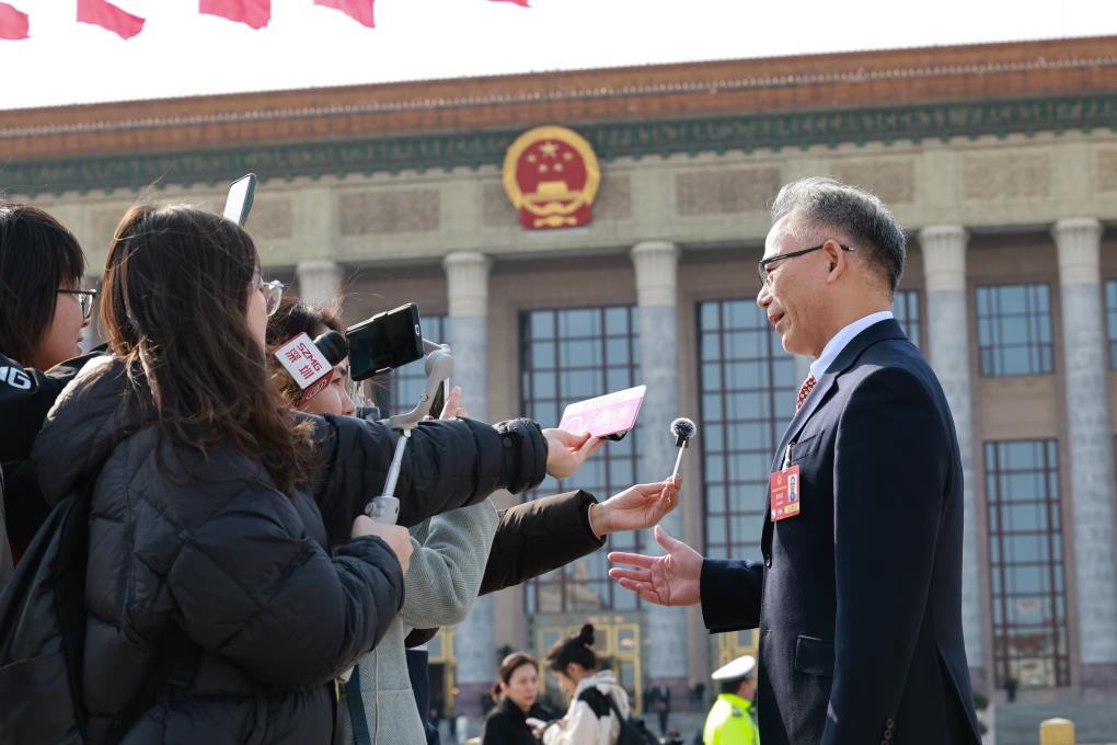 3月4日,全國政協十四屆三次會議開幕會即將在北京人民大會堂舉行。這是全國政協委員接受采訪。
