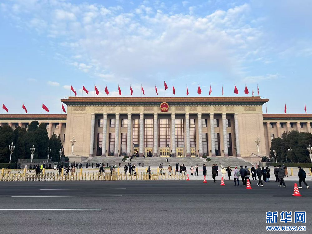 3月5日,第十四屆全國人民代表大會第三次會議在北京人民大會堂開幕。圖為人民大會堂外景。新華網記者 趙煜彤 攝