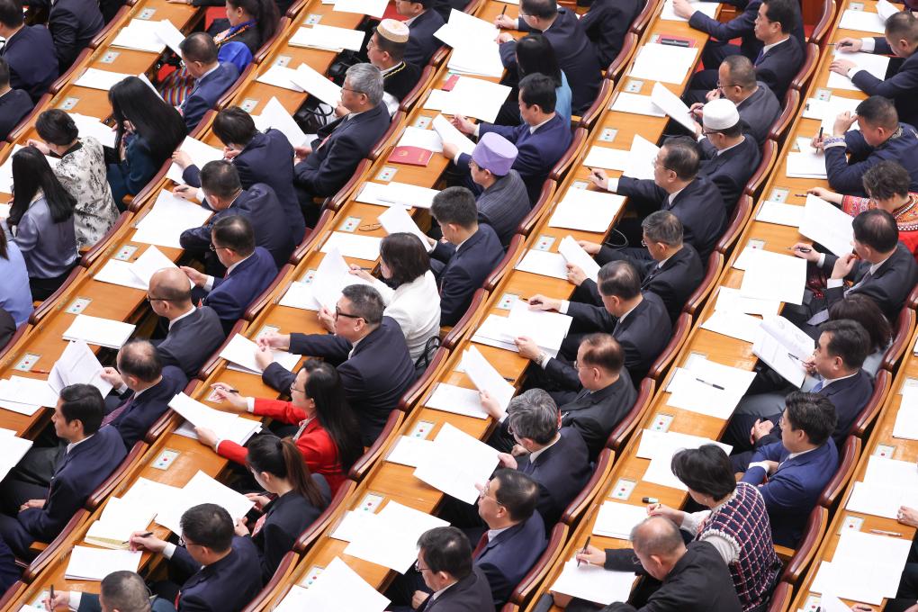 3月8日,十四屆全國人大三次會議在北京人民大會堂舉行第二次全體會議。