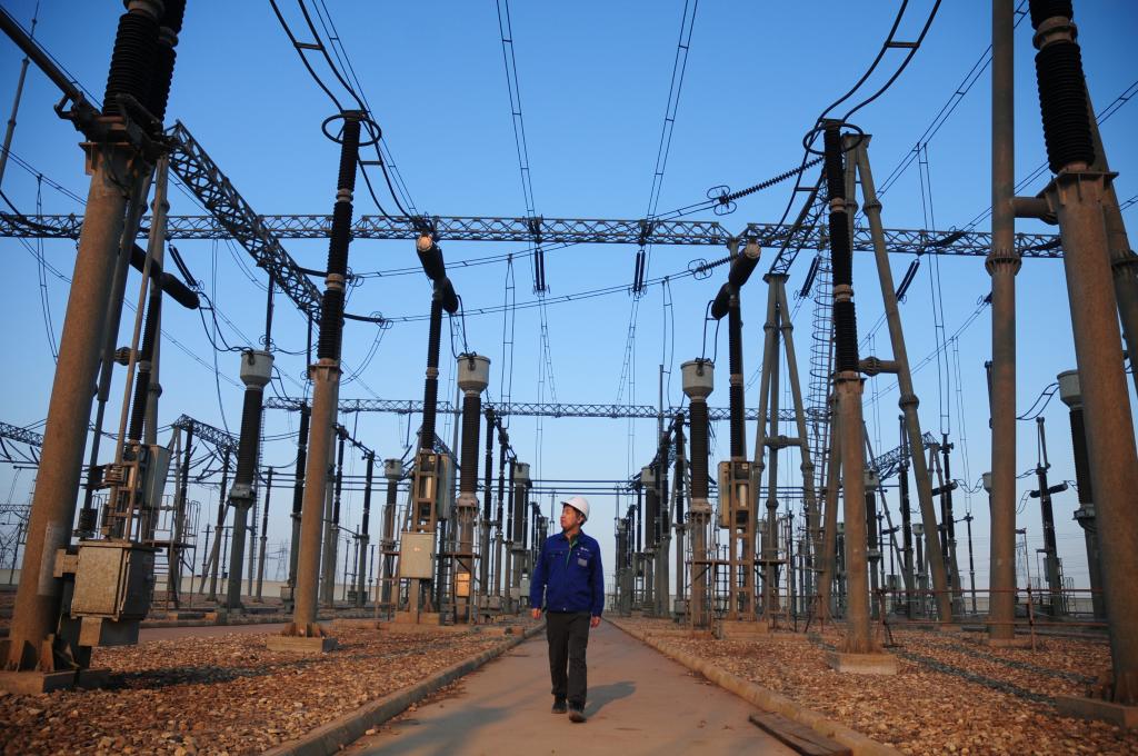 2月10日,上海電氣中方工程師在伊拉克瓦西特省華事德電廠升壓站開展巡檢維保作業。新華社記者 段敏夫 攝
