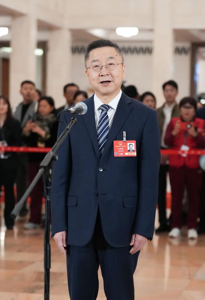 3月8日,第十四屆全國人民代表大會第三次會議第二場“代表通道”集中采訪活動在北京人民大會堂舉行。這是全國人大代表馬新強接受媒體采訪。