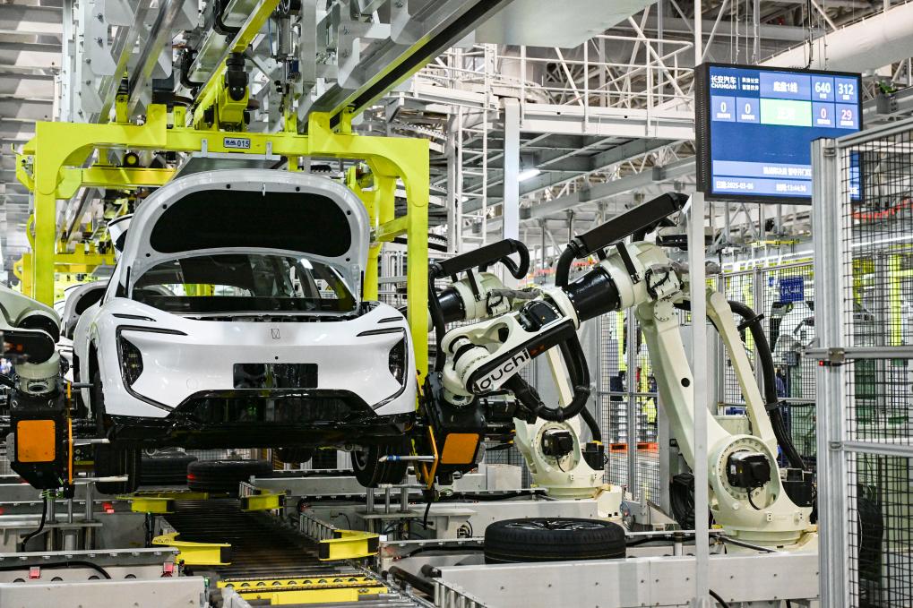 2025年3月6日在位于重慶市渝北區的長安汽車數智工廠總裝車間拍攝的自動化生產作業現場。新華社記者 王全超 攝