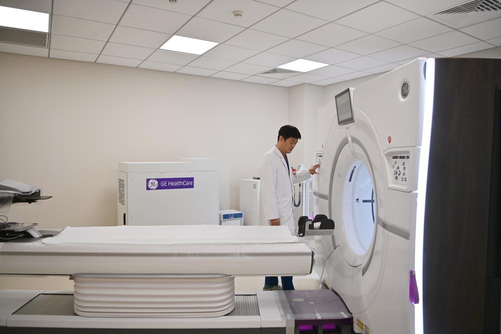 2025年2月26日,醫護人員在天津鵬瑞利醫院檢查醫療設備。當日,我國首家外商獨資三級綜合醫院——鵬瑞利綜合醫院(天津鵬瑞利醫院)迎來首個開診日。新華社記者 李然 攝