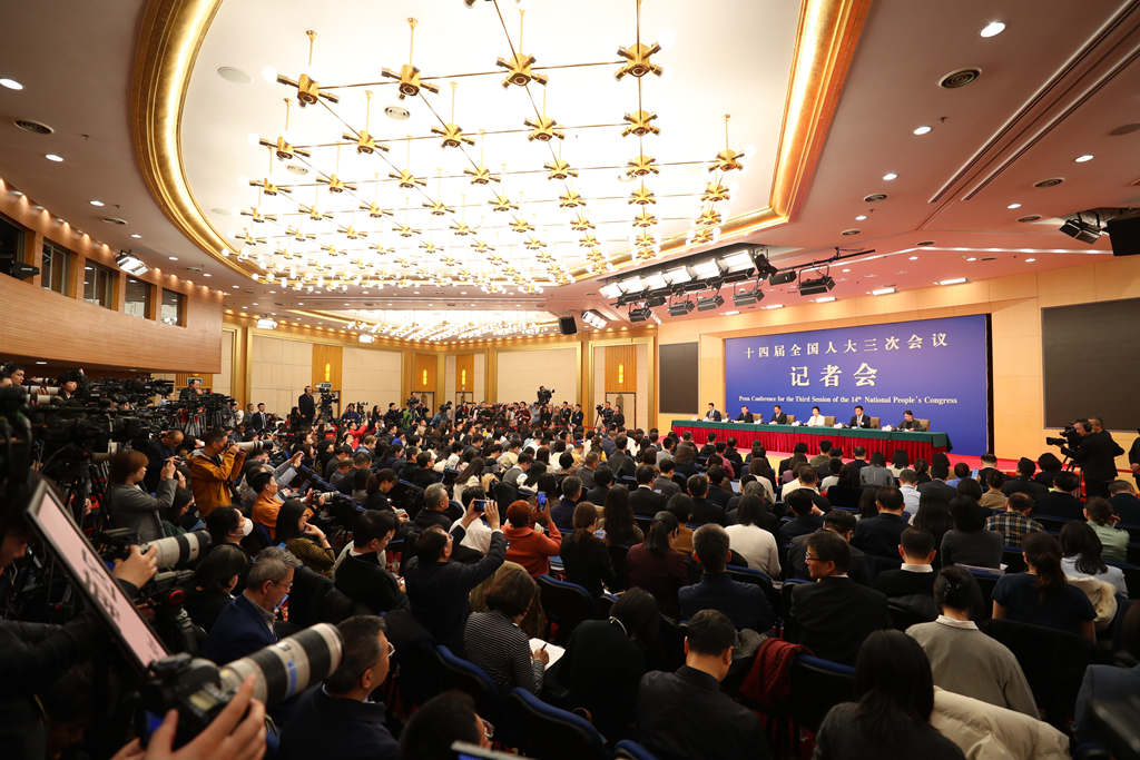 3月9日,十四屆全國人大三次會議在北京梅地亞中心新聞發布廳舉行記者會。民政部部長陸治原、人力資源和社會保障部部長王曉萍、住房和城鄉建設部部長倪虹、國家衛生健康委員會主任雷海潮就民政、就業和社會保障、住房、衛生健康等相關問題回答中外記者提問。新華網記者 王翰林 攝