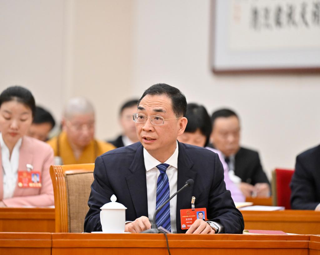 3月5日,全國人大代表吳賢德在福建代表團全體會議上發言。