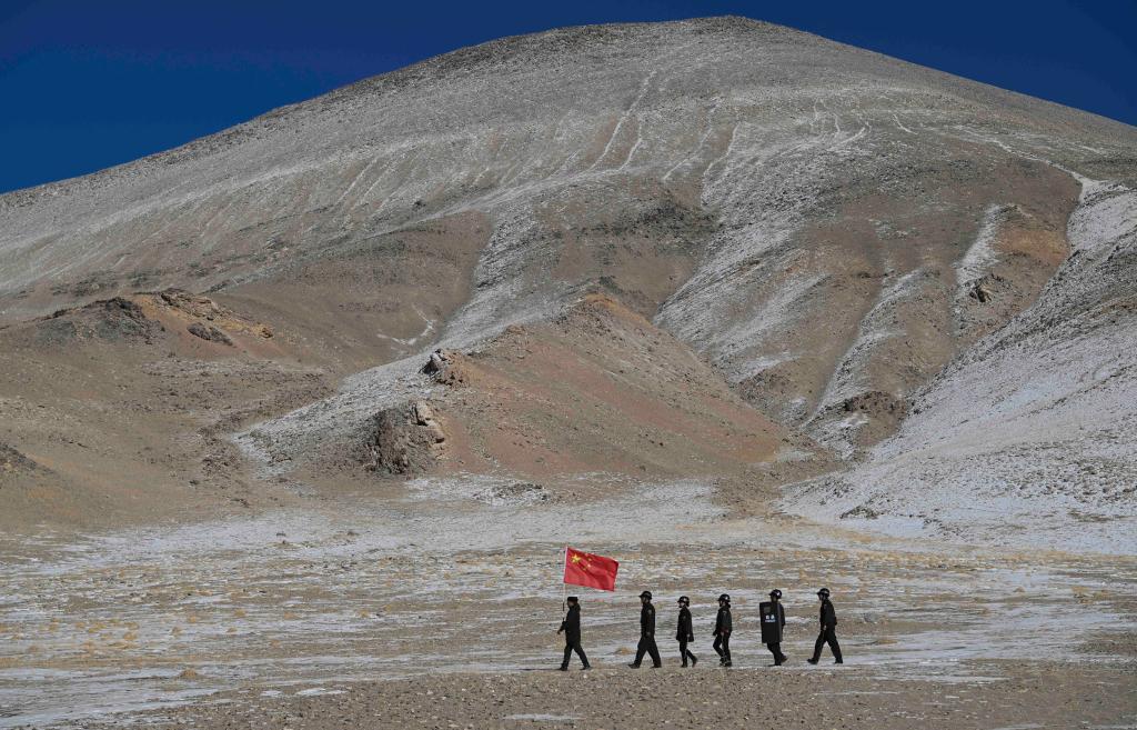 1月9日,多來提曼·開米克(左一)與護邊員一起巡邊。