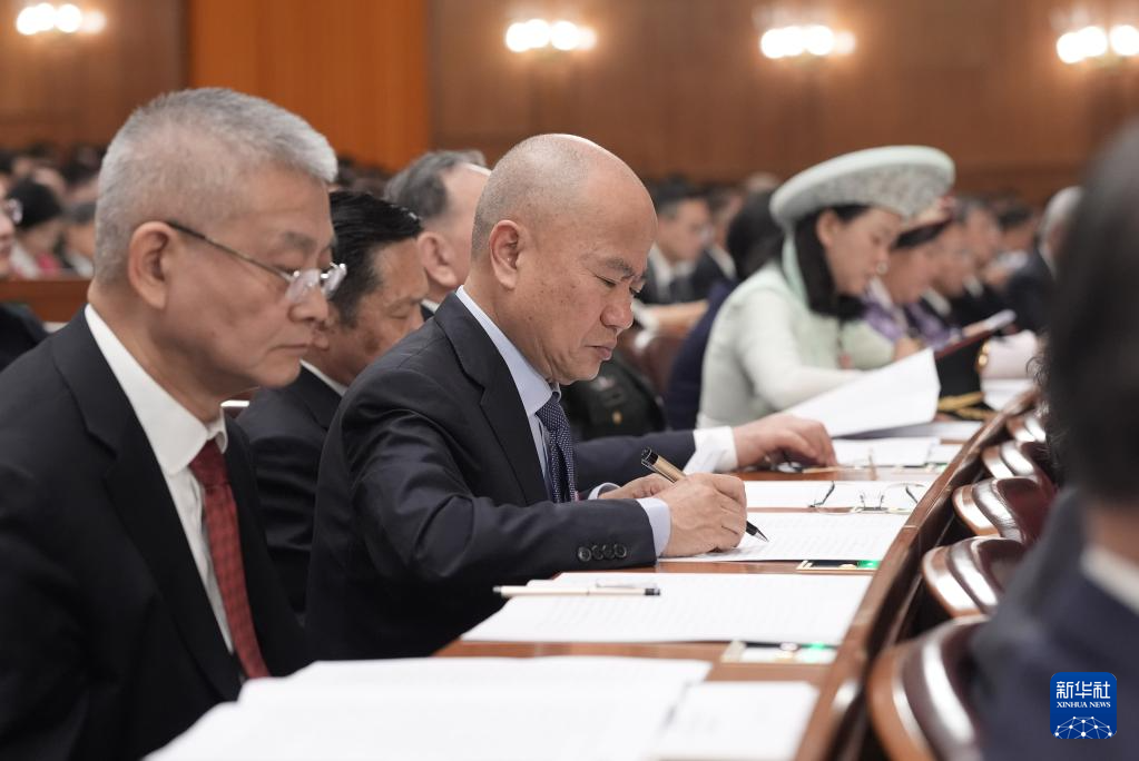 3月5日,全國人大代表、中石化第四建設有限公司工匠學院焊接教練張振連(右二)在北京人民大會堂出席十四屆全國人大三次會議開幕會。