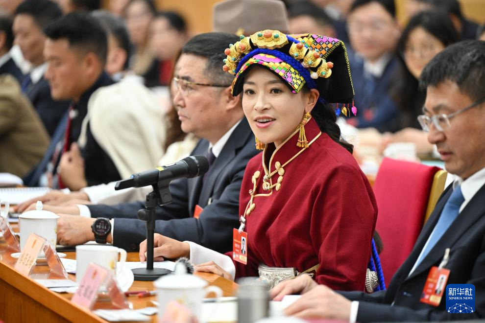 3月7日,全國人大代表、四川省阿壩藏族羌族自治州馬爾康市老年養護院院長格西王姆在十四屆全國人大三次會議四川代表團全體會議上發言。