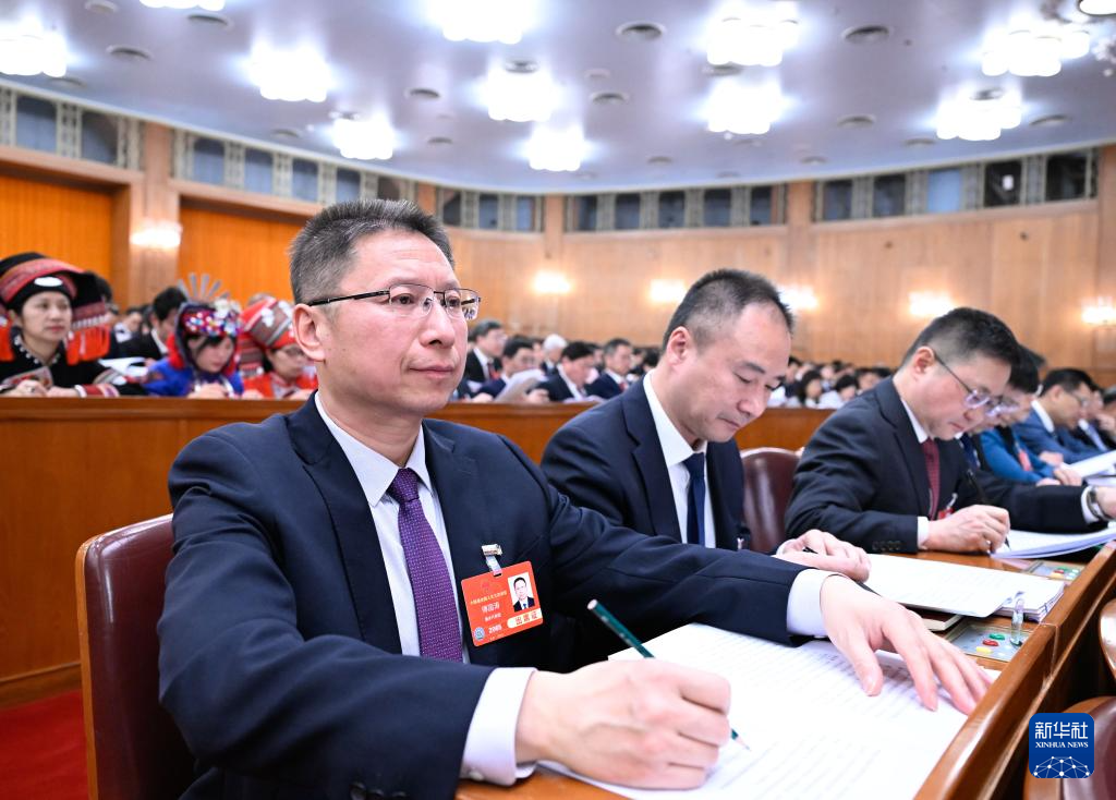 3月5日,全國人大代表、重慶紅江機械有限責任公司加工中心特級技師傅國濤在北京人民大會堂出席十四屆全國人大三次會議開幕會。
