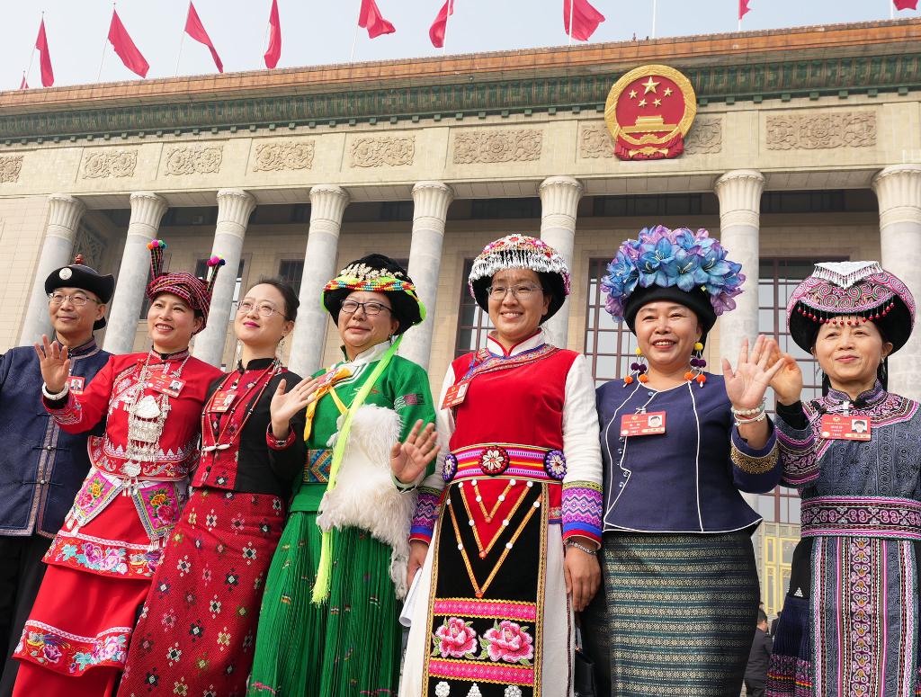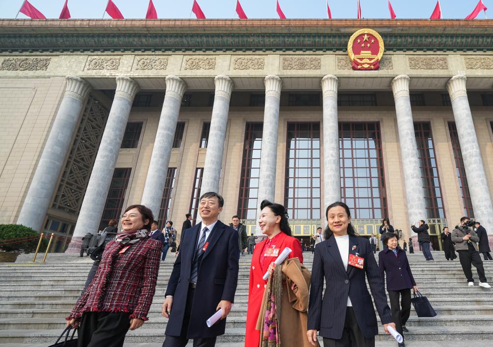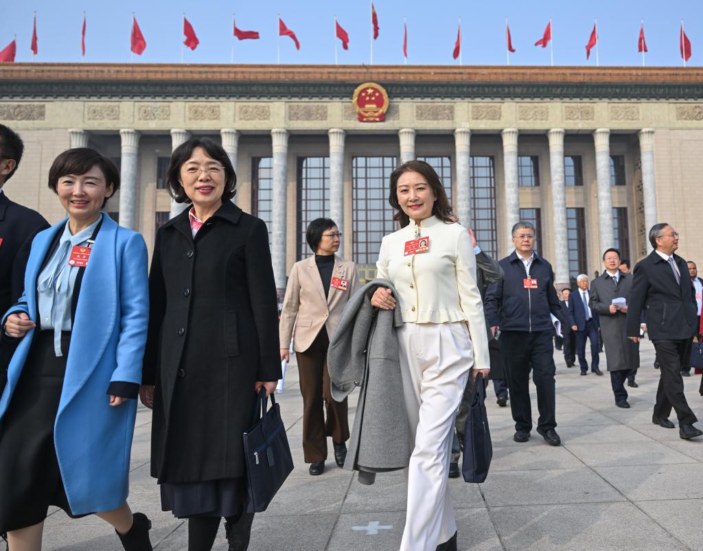 3月10日,全國政協十四屆三次會議在北京人民大會堂舉行閉幕會。這是閉幕會后,委員們走出人民大會堂。