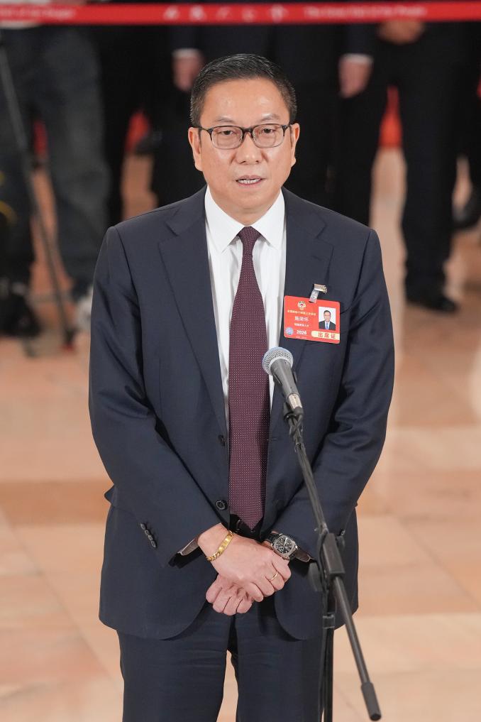 3月10日,全國政協十四屆三次會議第三場“委員通道”集體采訪活動在北京人民大會堂舉行。這是全國政協委員施榮懷接受媒體采訪。新華社記者 才揚 攝
