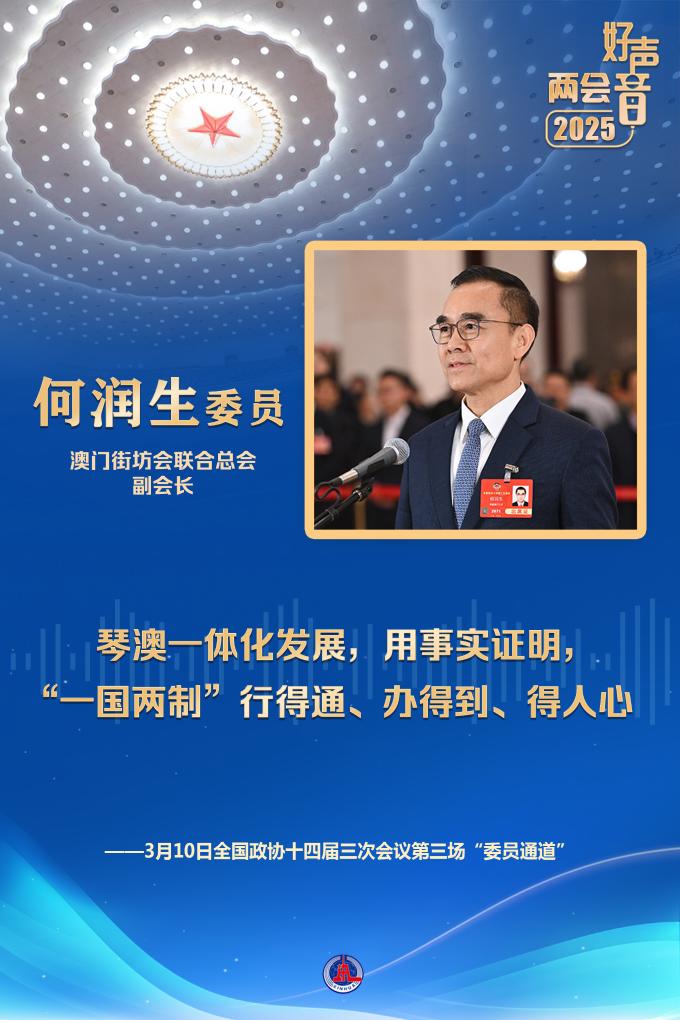 2024年是澳門回歸祖國25周年。澳門街坊會聯合總會副會長何潤生委員向記者介紹了一名澳門居民搬到橫琴“澳門新街坊”生活的故事。在他看來,琴澳一體化發展,用事實證明,“一國兩制”行得通、辦得到、得人心。