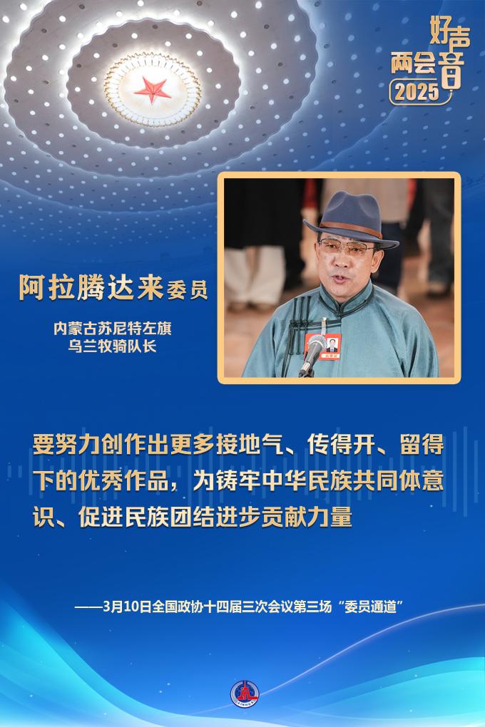 “在內蒙古大地上,活躍著75支烏蘭牧騎隊伍,有3000多名隊員,每年開展演出1萬多場?!卑⒗v達來委員說,要努力創作出更多接地氣、傳得開、留得下的優秀作品,為鑄牢中華民族共同體意識、促進民族團結進步貢獻力量。