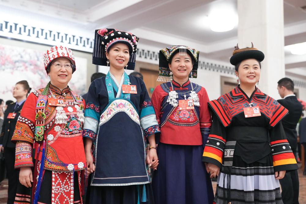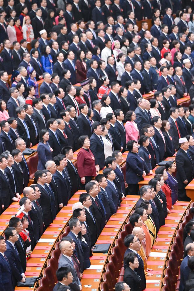 3月11日,十四屆全國人大三次會議在北京人民大會堂舉行閉幕會。這是代表們在合影。